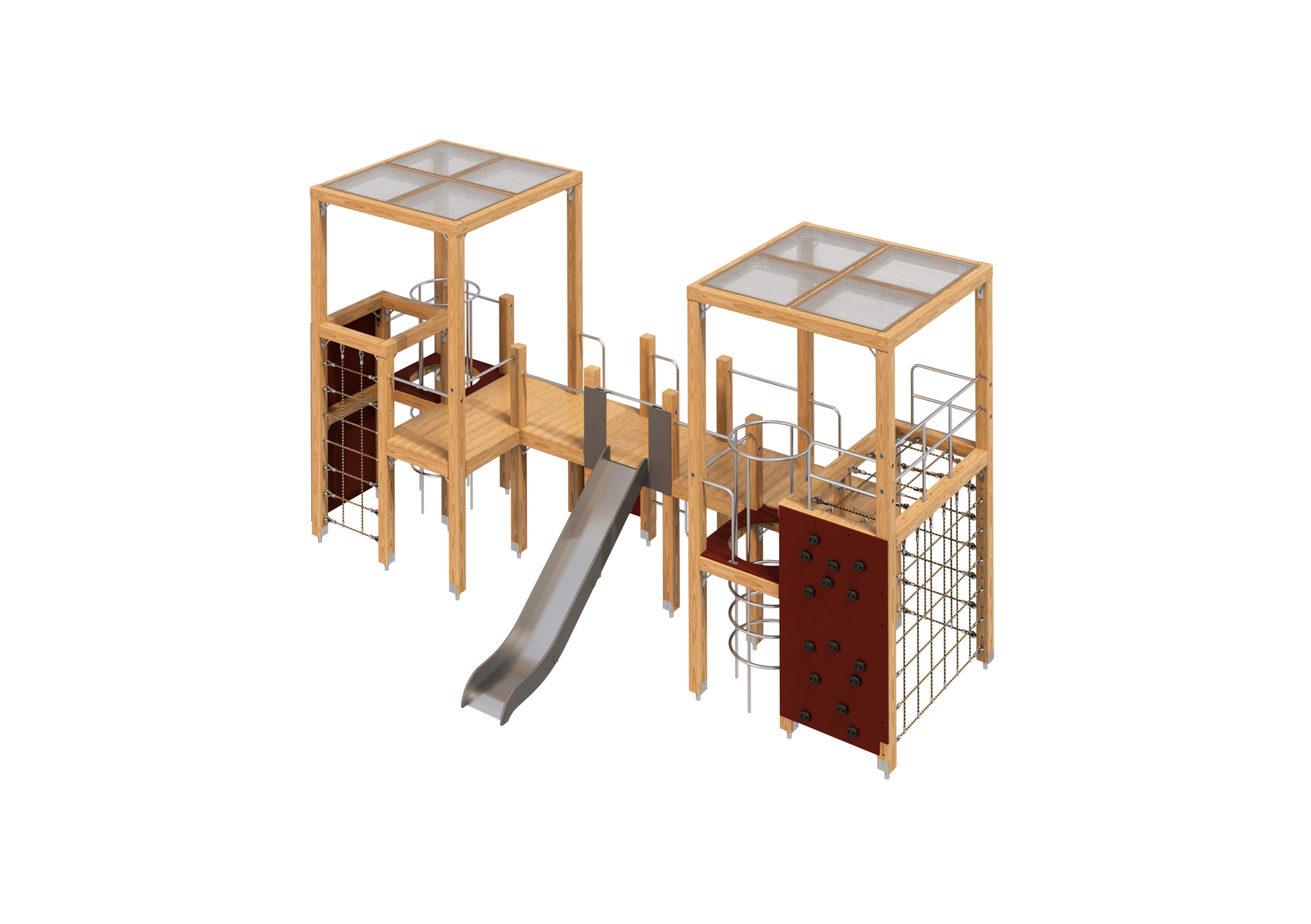 - Комбинированные системы. Сочетают классические элементы (горки, качели) и современные спортивные модули (скалодромы, сетки для лазания).